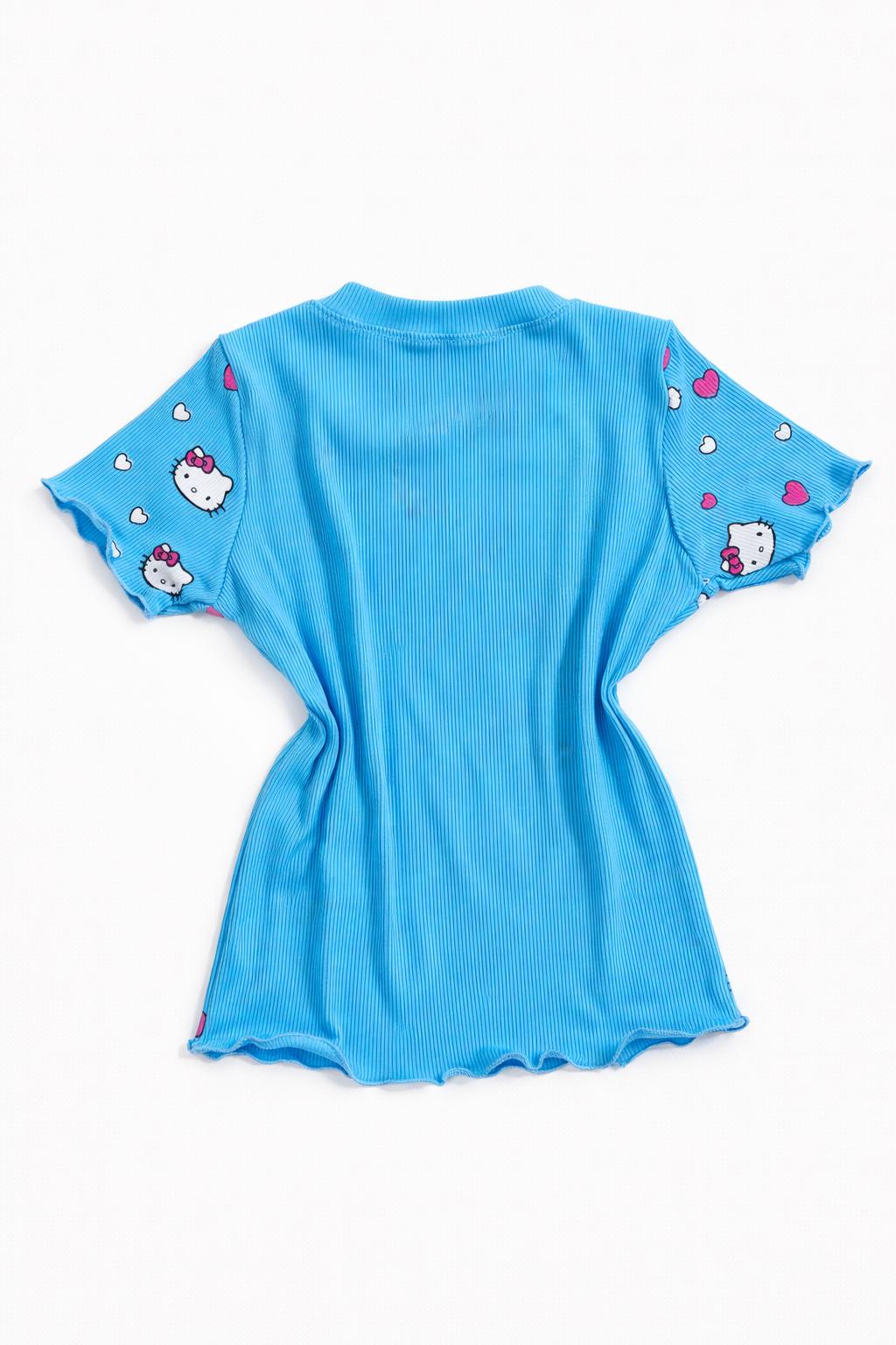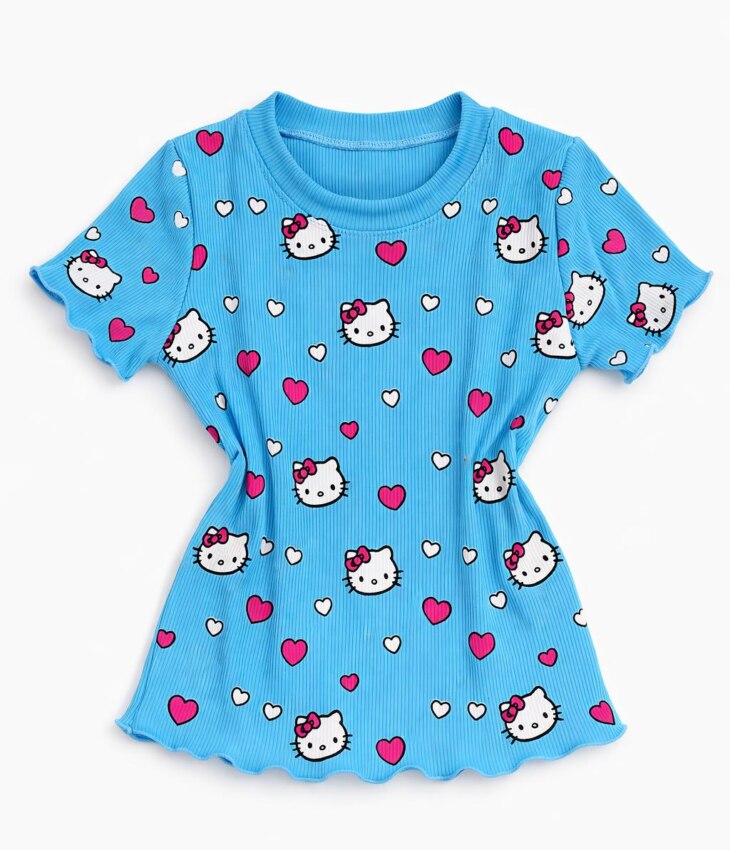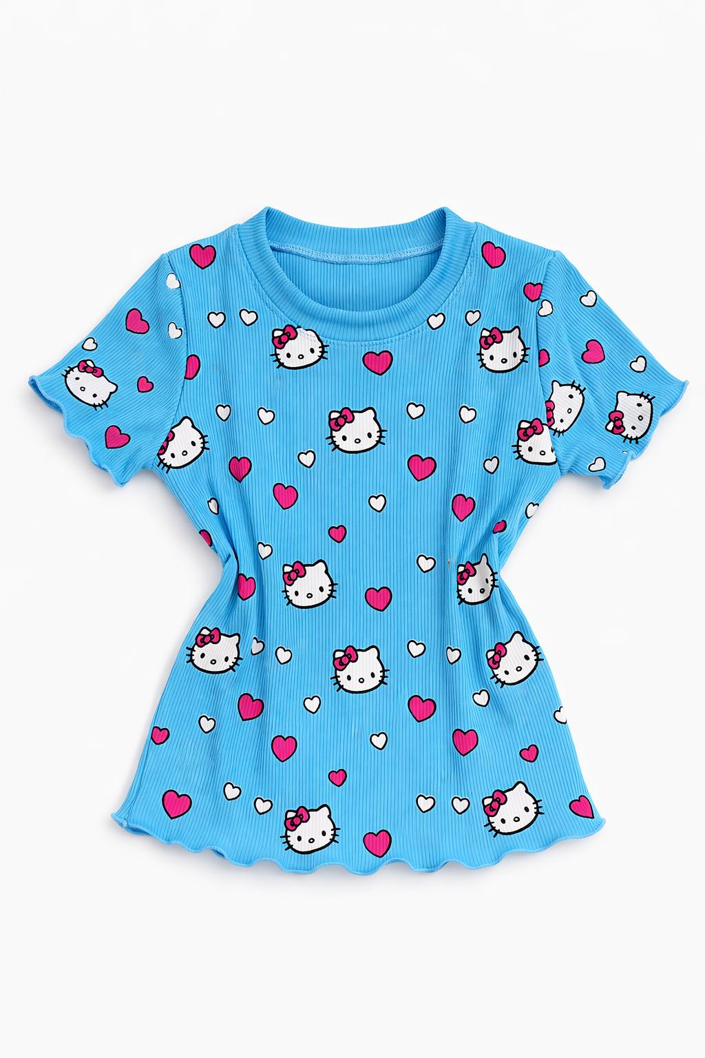 Blusa Infantil Feminina Manga Curta Canelada Azul com Corações