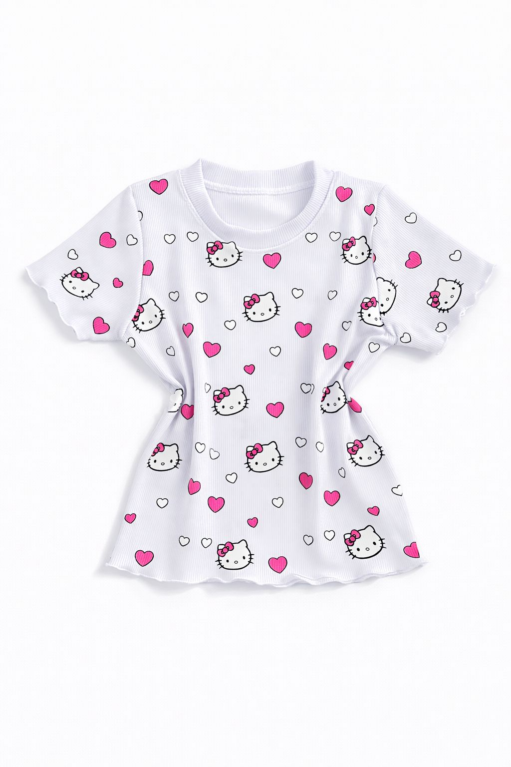 Blusa Infantil Feminina Manga Curta Canelada Branca com Corações