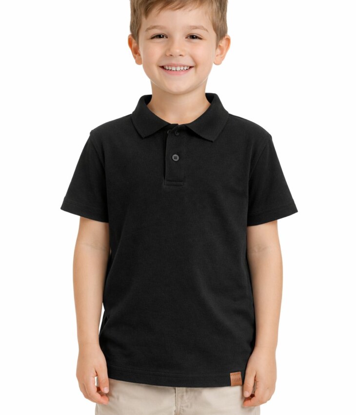 Camisa Polo Infantil Masculina Básica Manga Curta Preto