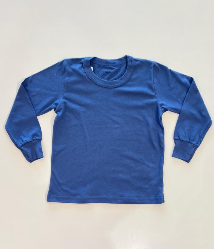 Camiseta Manga Longa Infantil Masculina Básica com Punho Azul