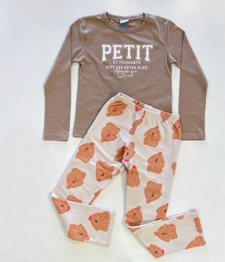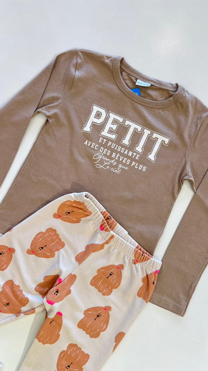 Conjunto Infantil Feminino Blusa Manga Longa Avelã e Legging Cachorros