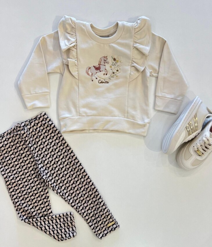 Encante sua pequena com nosso conjunto: blusa manga longa e Calça . Estilo e conforto que ela vai adorar. Garanta o look perfeito agora!