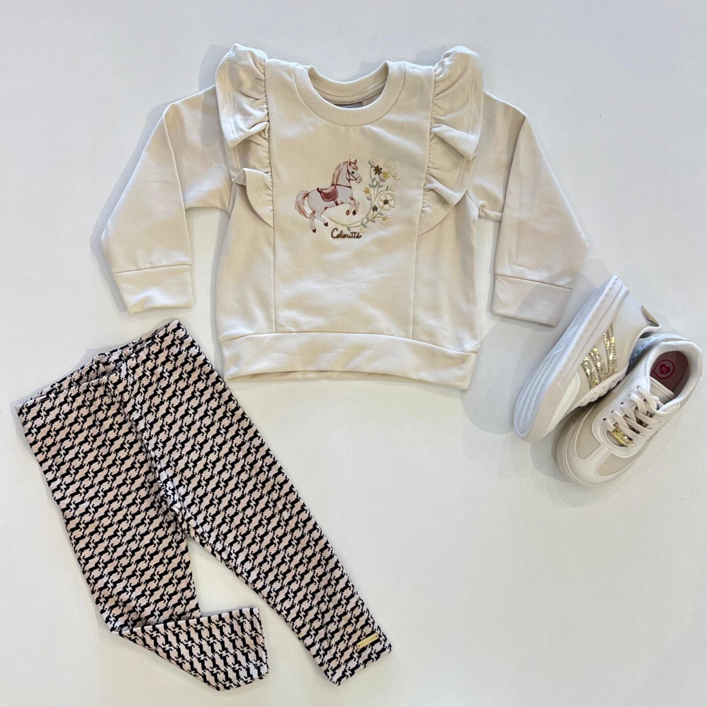 Conjunto adorável: blusa manga longa + calça. Estilo e conforto para as pequenas. Descubra agora!