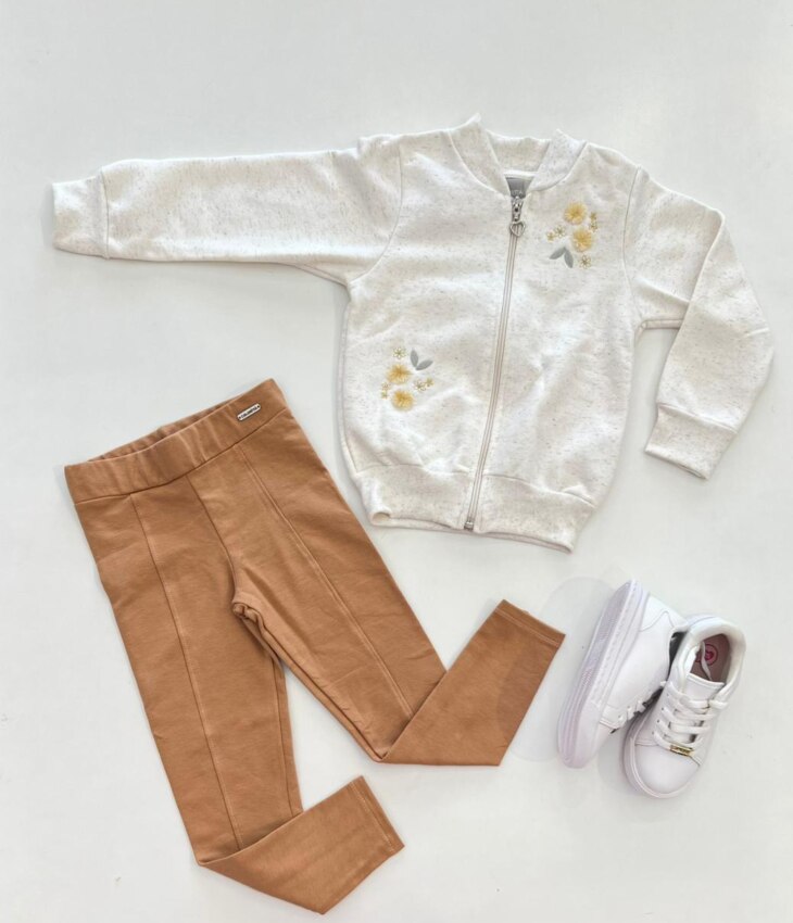 Conjunto Infantil Feminino Blusa Manga Longa e Calça Legging Bege