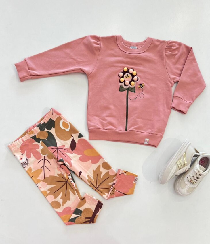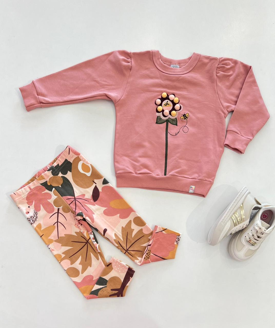Conjunto Infantil Feminino Blusa Manga Longa e Calça Legging Rose