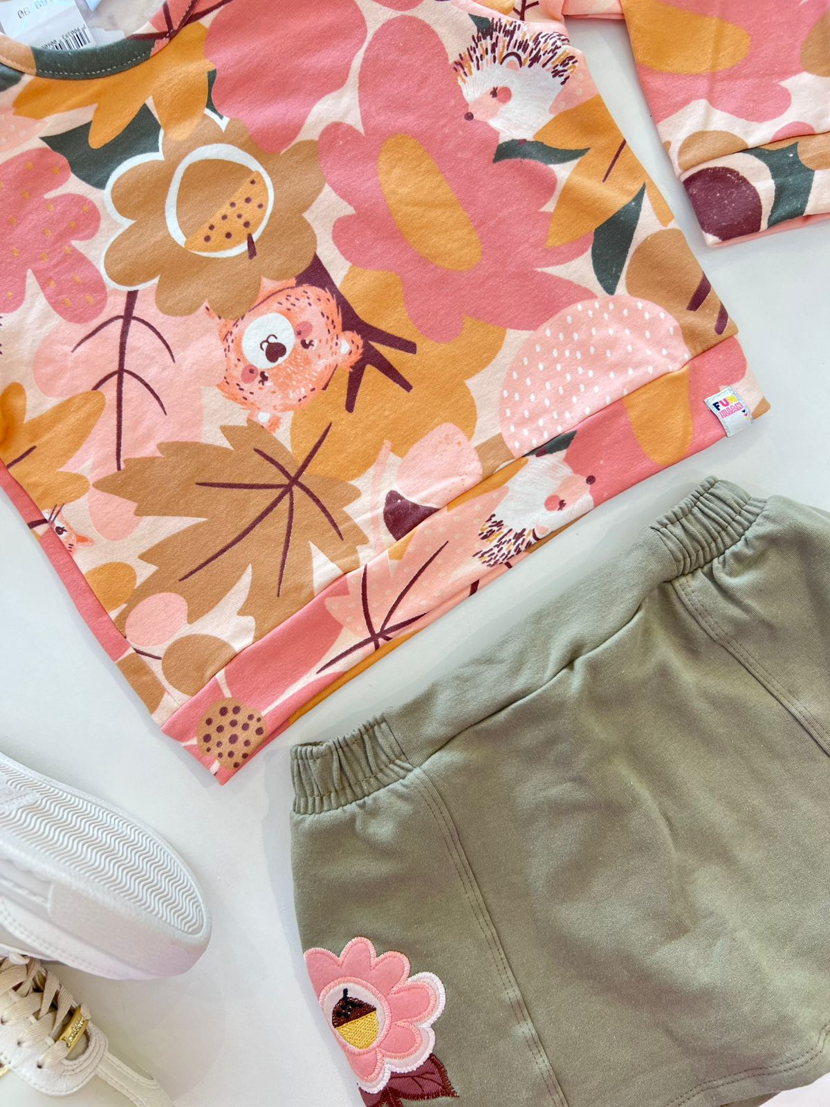 Encante com nosso conjunto infantil: blusa manga longa e short . Estilo e diversão para as pequenas fashionistas.