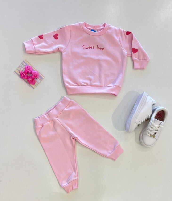 Conjunto Infantil Feminino Blusão detalhes em Coração e Calça Rosa