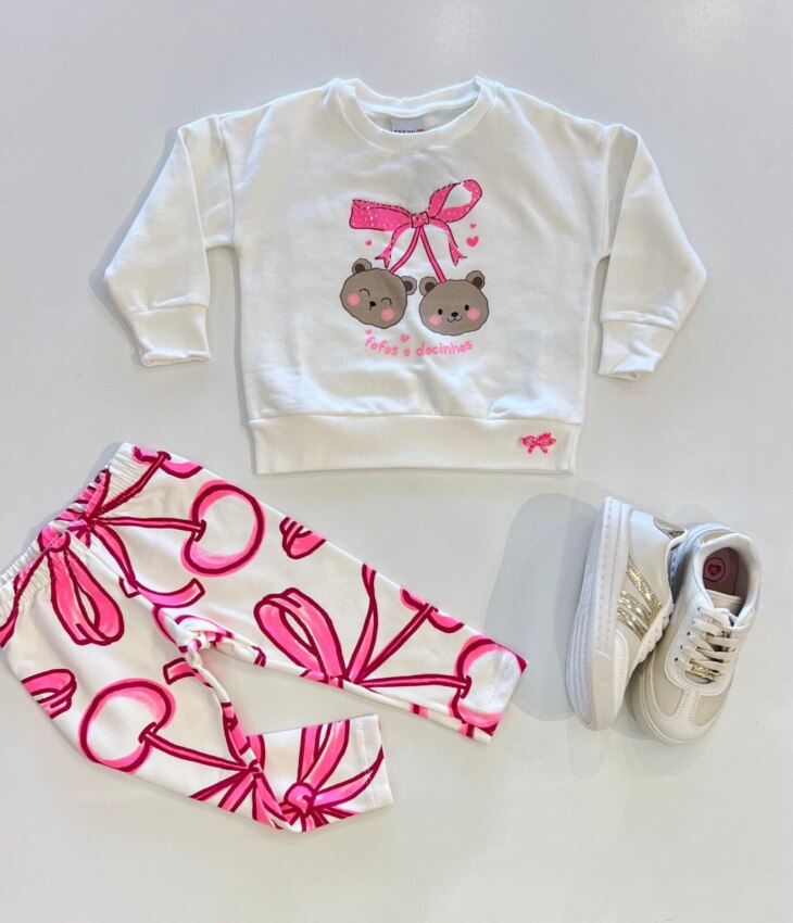 Conjunto Infantil Feminino Blusão Estampa Ursos e Legging Rosa