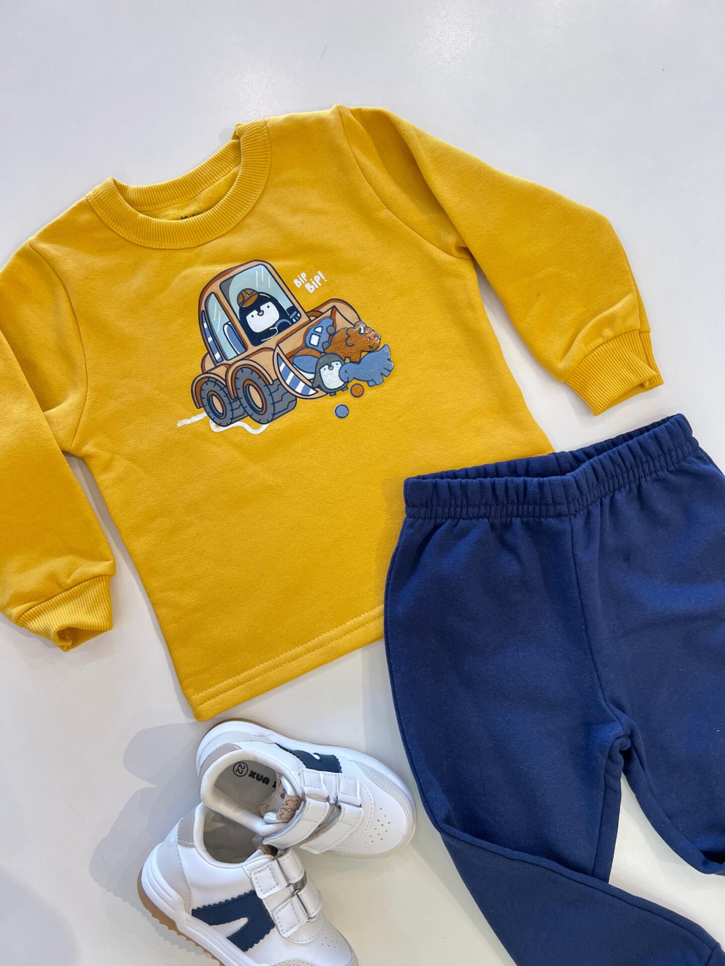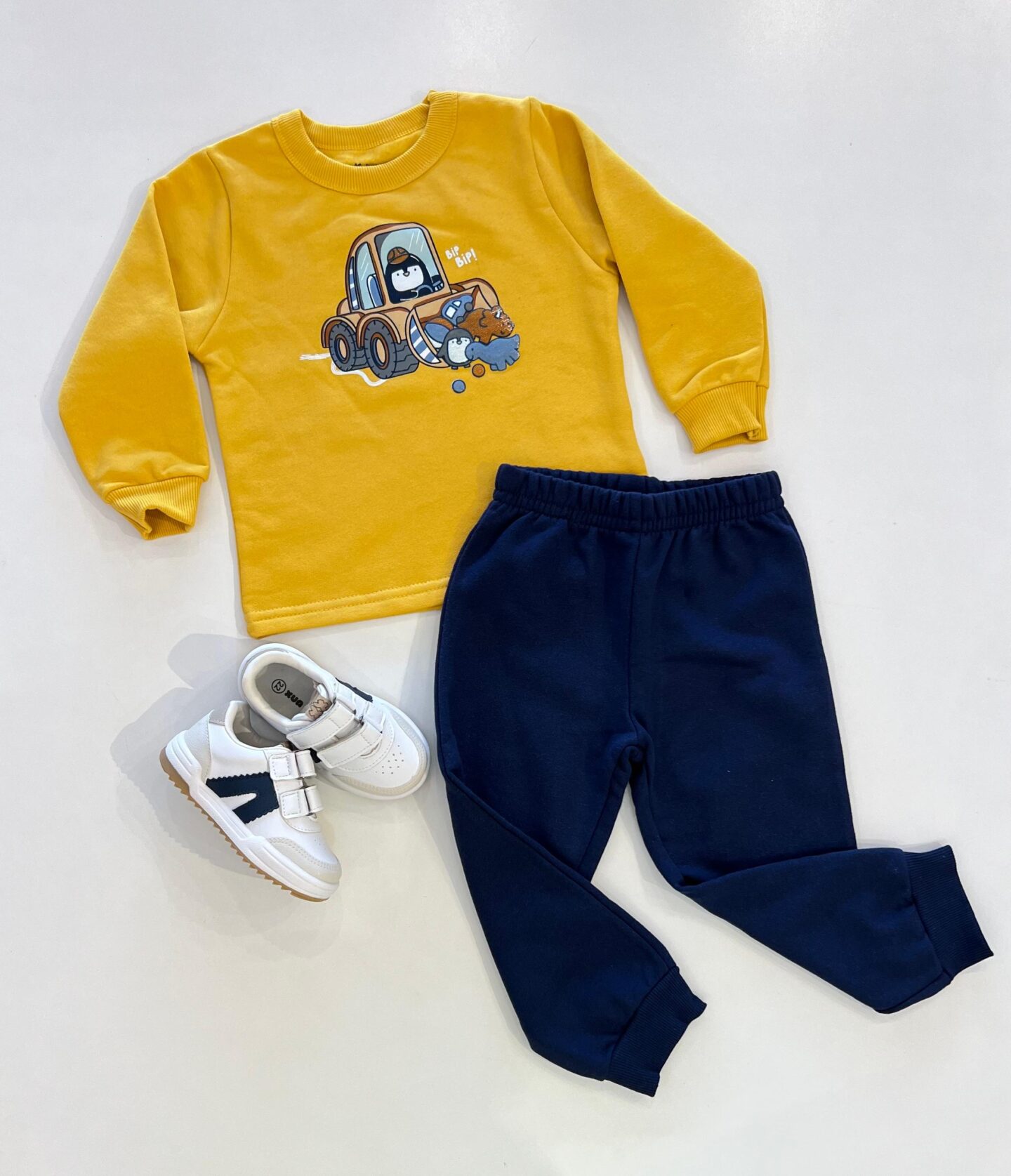 Conjunto Infantil Masculino Blusão Amarelo e Calça Jogger Azul Marinho