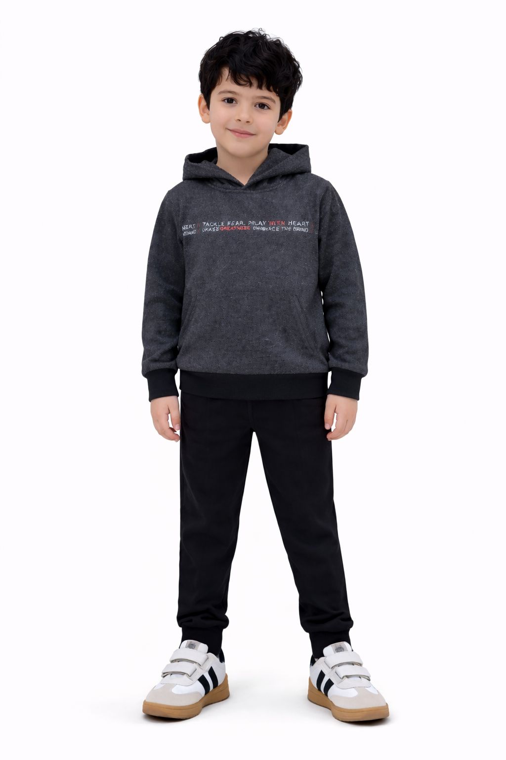 Conjunto Infantil Masculino Blusão com Capuz e Calça Moletom Preto