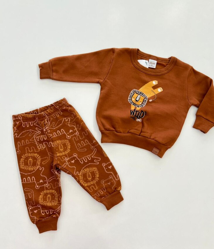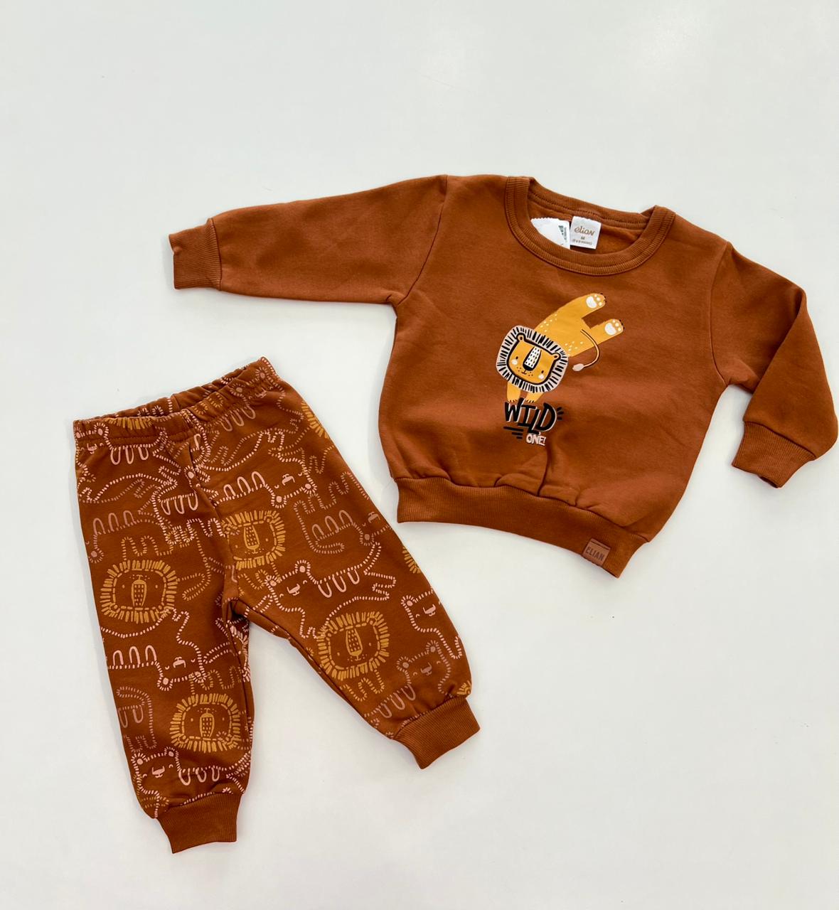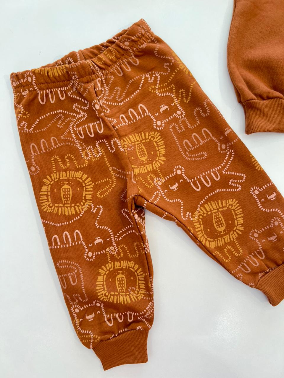 Conjunto Infantil Masculino Blusão Leão e Calça Jogger Marrom Caramelo