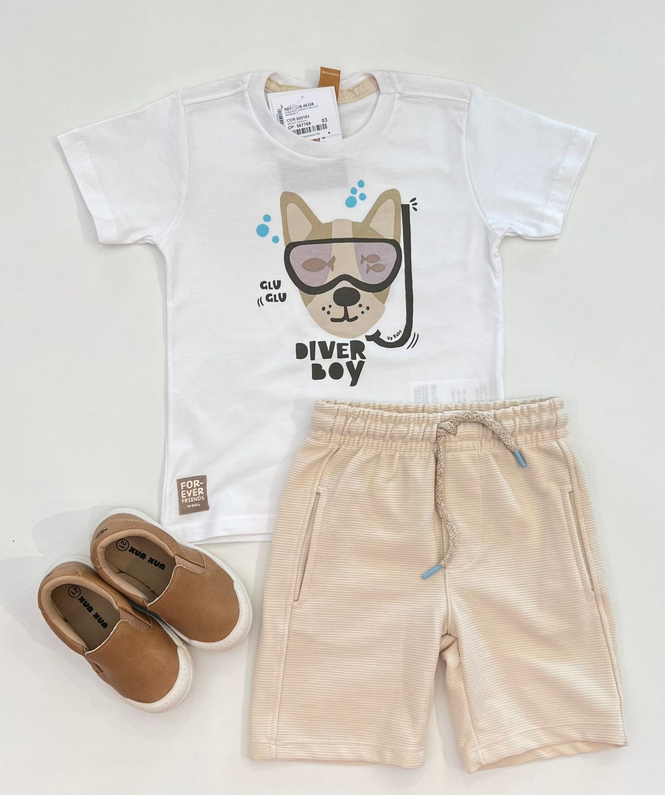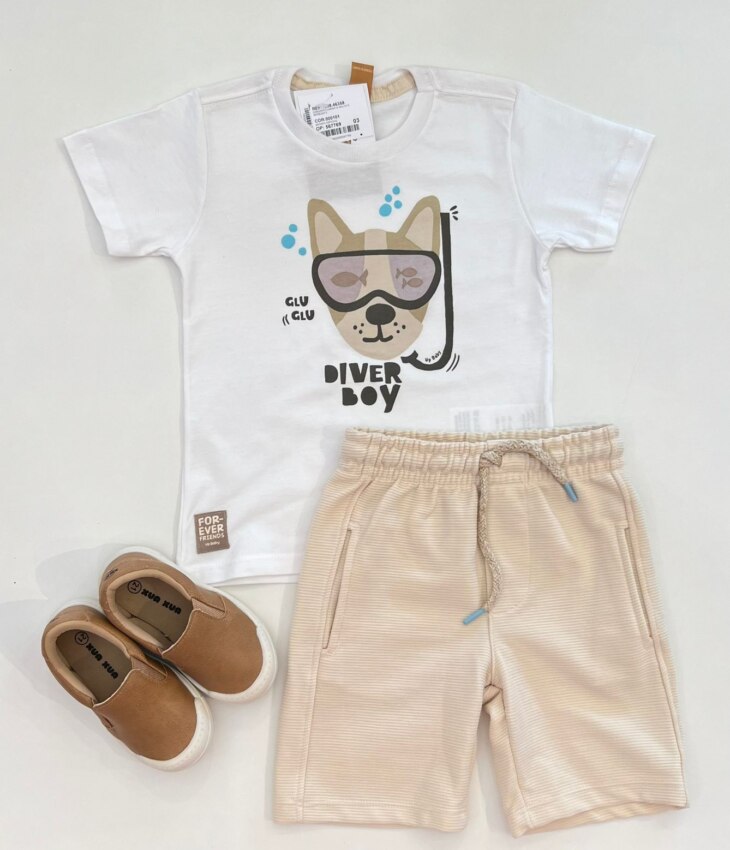 Estilo e diversão garantidos: camiseta e bermuda, o conjunto perfeito para os pequenos aventureiros!