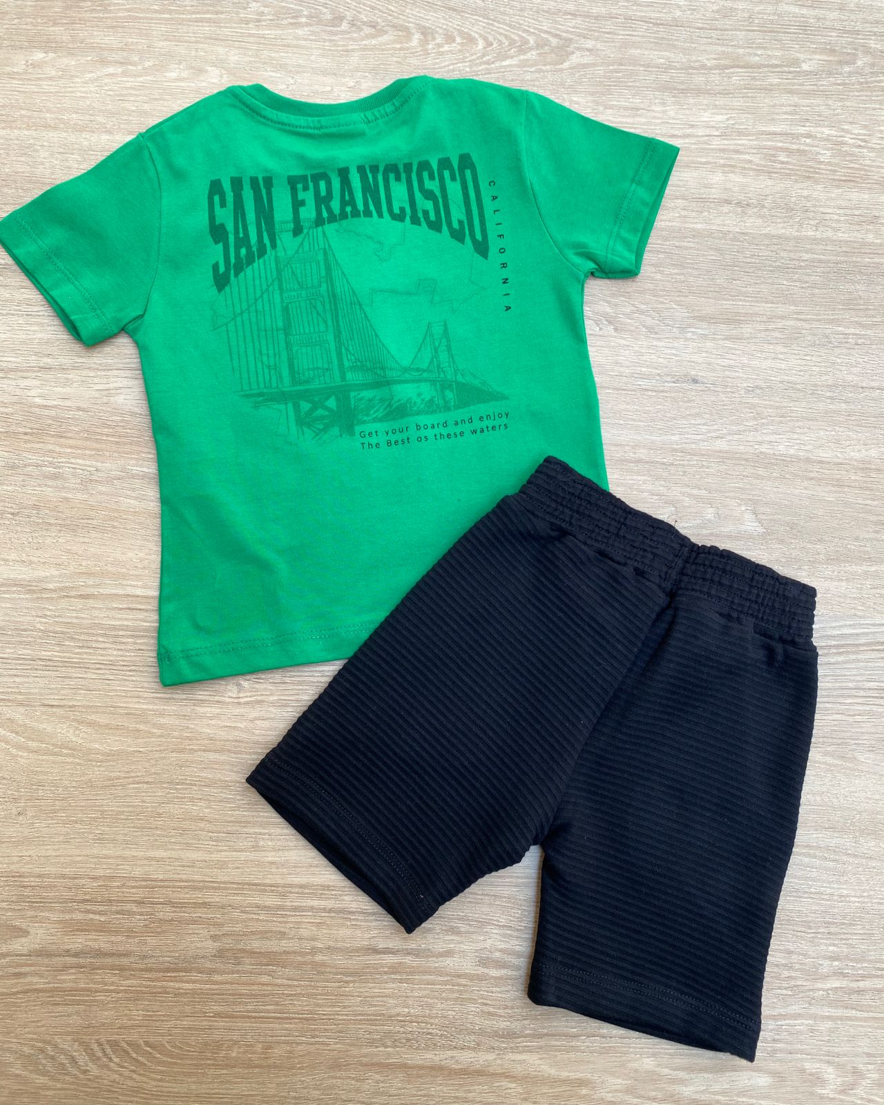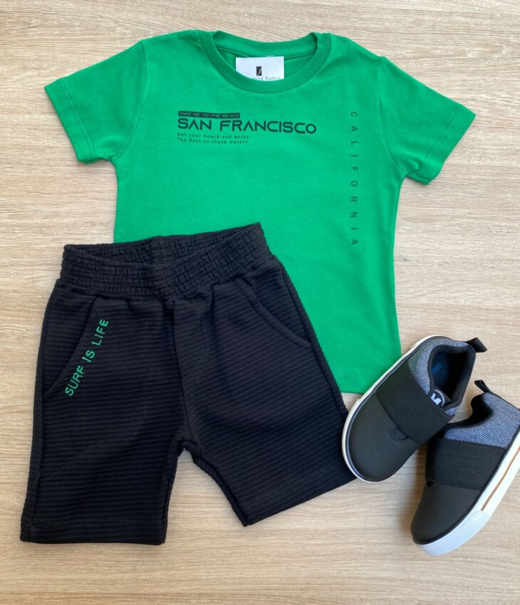 Conjunto Infantil Masculino Camiseta Verde e Bermuda Preta