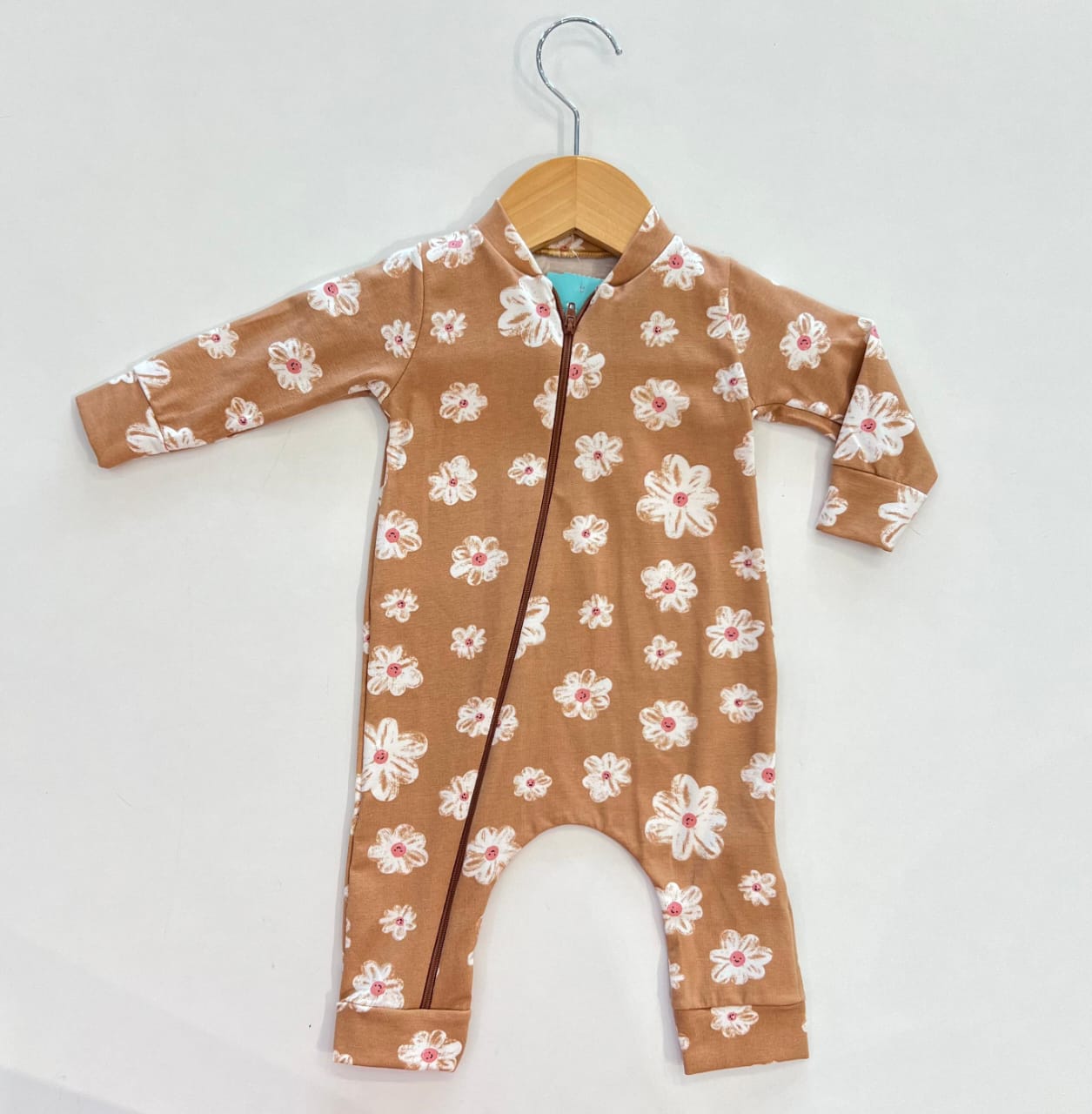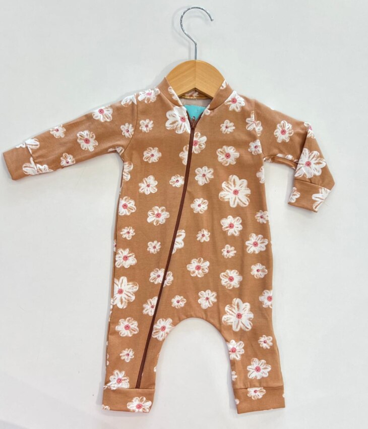 Macacão Infantil Feminino com Zíper Lateral Estampado Flores