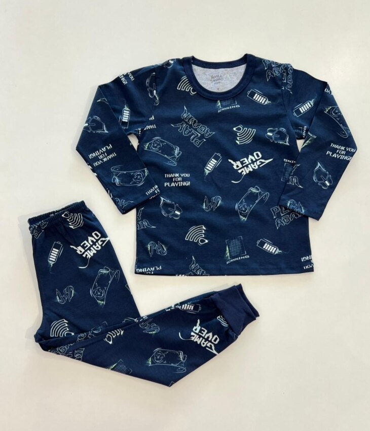 Conjunto pijama menino: conforto para noites tranquilas e diversão em casa. Blusa manga longa e calça, perfeito para o pequeno fashionista. Adquira agora!
