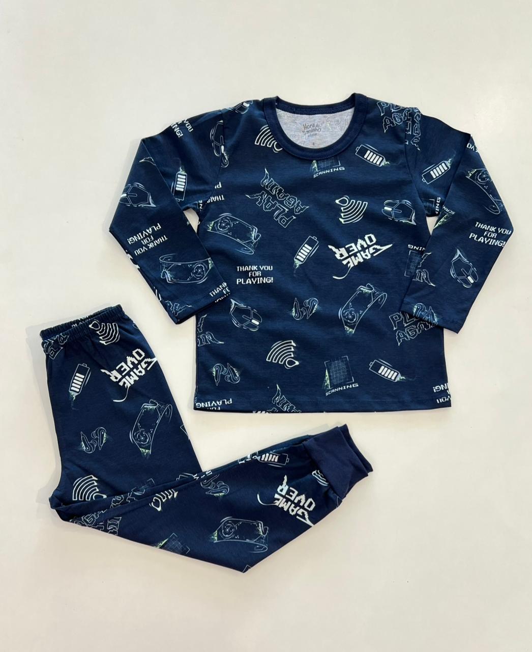 Pijama Infantil Masculino Blusa Manga Longa Play e Calça Azul Marinho