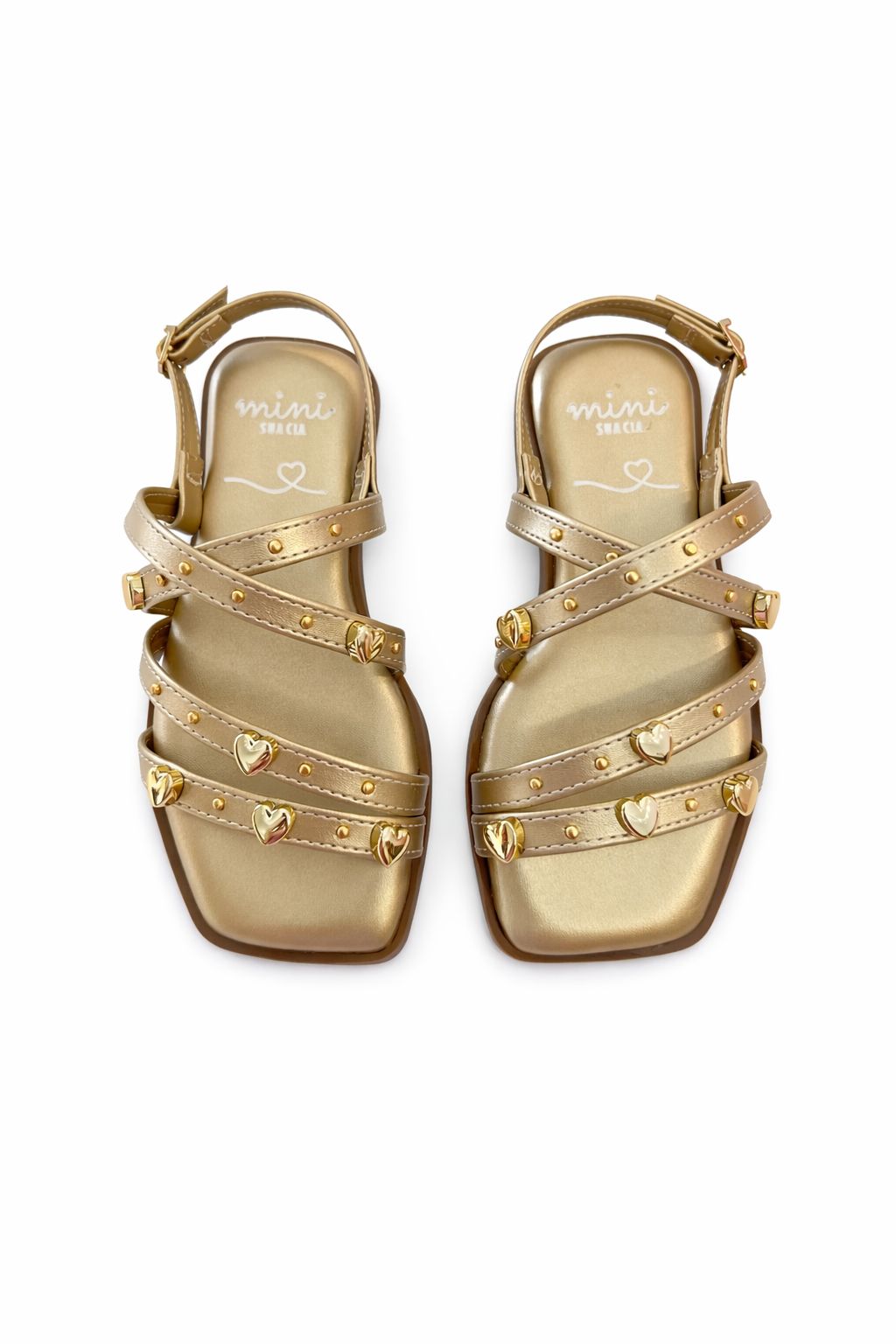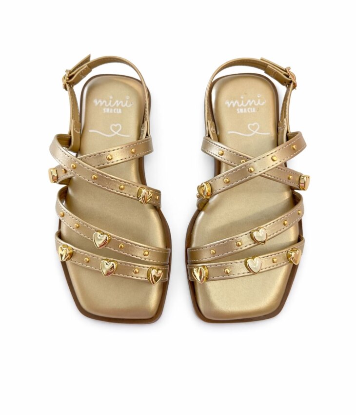 Sandália Infantil Feminina Dourada com detalhes em Corações