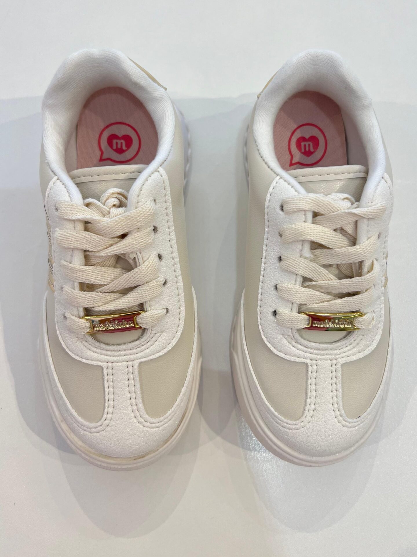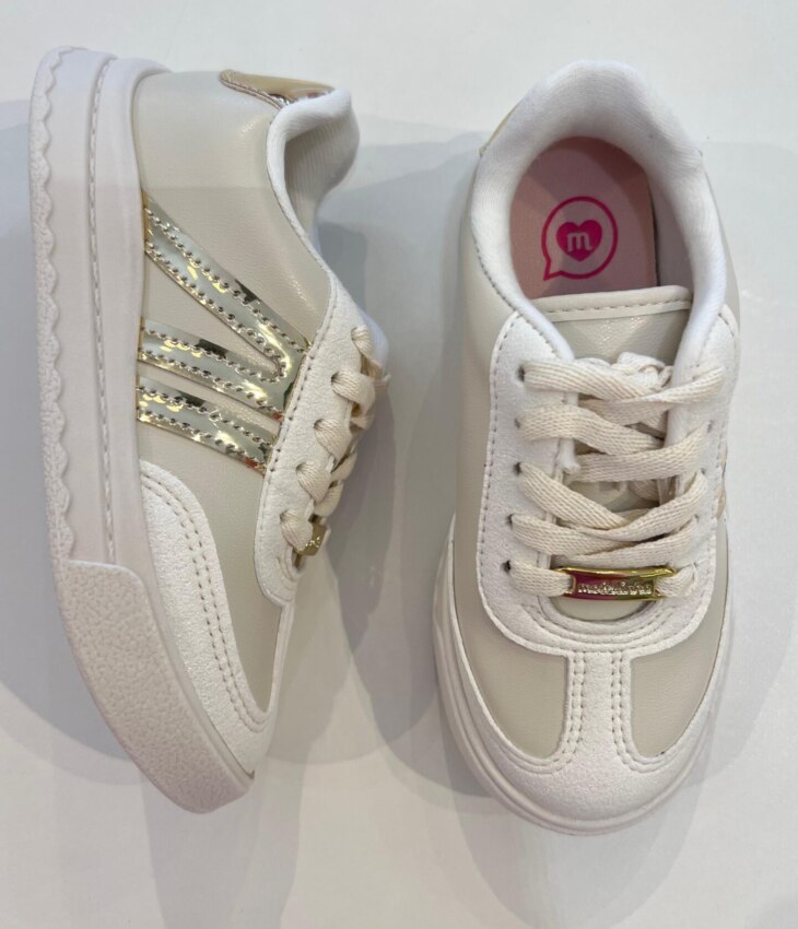 Tênis Infantil Feminino Off White com detalhes glitter Dourado
