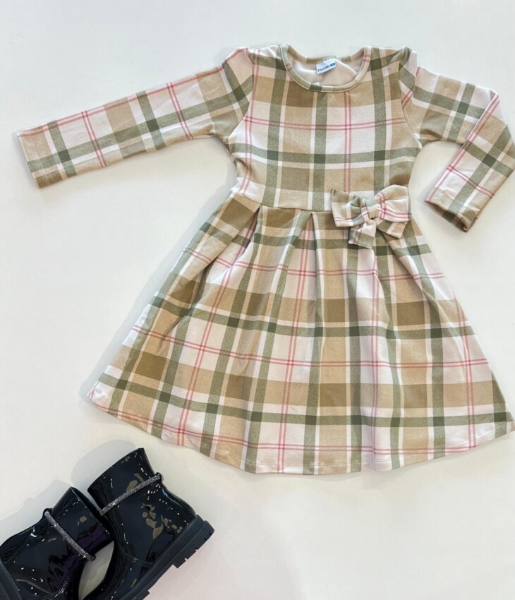 Vestido Infantil Feminino Manga Longa Flanelado Xadrez Bege